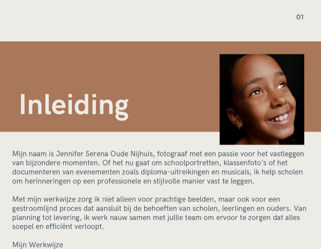Na een aantal jaren ervaring te hebben opgedaan als schoolfotograaf in opdracht van een organisatie, ben ik sinds dit jaar officieel voor mezelf begonnen. Met oog voor detail en een ontspannen sfeer zorg ik ervoor dat leerlingen en medewerkers zich op hun gemak voelen, zodat de foto’s spontaan en natuurlijk zijn.